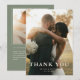 Elegante, minimale, salbeigrüne Foto-Hochzeit Dankeskarte