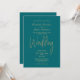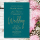 Eine elegante aquamarine Hochzeitseinladung mit Goldtext.