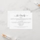 Elegante Minimalistische Einfache Hochzeitsdetails Unterkunft Information Card. Das Design besticht durch ein elegantes, modernes Textlayout. Um erweiterte Änderungen vorzunehmen, wählen Sie bitte unter Personalisieren dieser Vorlage die Option "Klicken Sie auf, um weitere Anpassungen vorzunehmen".