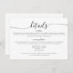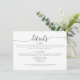 Elegante Minimalistische Einfache Hochzeitsdetails Unterkunft Information Card. Das Design besticht durch ein elegantes, modernes Textlayout. Um erweiterte Änderungen vorzunehmen, wählen Sie bitte unter Personalisieren dieser Vorlage die Option "Klicken Sie auf, um weitere Anpassungen vorzunehmen".