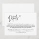 Die "Elegante Minimalistische Wedding Details Enclosure Card" verbindet zeitlose Eleganz mit moderner Einfachheit. Diese Karte ist für Paare gedacht, die eine schlichte Schönheit schätzen, und bietet wichtige Details für Hochzeiten wie Anfahrtsbeschreibung, Unterkunft oder besondere Anleitungen mit Klarheit und Anmut. Das raffinierte Design ergänzt jede Einladungs-Suite, die eine Touch der Eleganz, ohne die Ästhetik zu überfordern. Diese Karte ist perfekt für ein elegantes und nahtloses Hochzeitserlebnis geeignet und sorgt dafür, dass jedes Detail mühelos geteilt wird, wodurch ein bleibender Eindruck auf Ihre Gäste verlassen wird.
