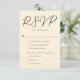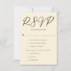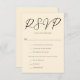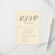 Diese elegante Elfenbeinheirat-RSVP-Karte bietet eine schöne minimalistische schwarze Typografie auf der cremefarbenen Farbe für Ihre feierliche Zeremonie. Traditionelle Farben kombiniert mit dem aktuellen Trend von einfachem Skript in neutraler Farbe für Ihre Gäste freundlich zu antworten.