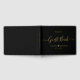 Elegantes Minimalistisches Simple Gold Script Wedding Black Gästebuch Personalisiert. Hochzeit Gästebuch in Schwarz und Gold. Moderne "Gästebuchtexte" in handgeschriebenem Schwanz, Kalligraphie des Schriftartes, Hochzeitstermin und Paare Vorname mit Liebe Herzmotiv/Form. Einfach mit Ihren Informationen anpassen. Es ist ideal für Hochzeiten oder Jubiläumsfeiern.