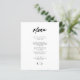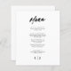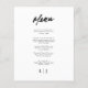 Erleben Sie ein raffiniertes und modernes Ambiente an Ihrem Hochzeitsempfang mit eleganten, minimalistischen Script-Karten für Hochzeitsfeiern. Diese geschmackvoll gestalteten Speisekarten eignen sich ideal für moderne, minimalistische Hochzeiten, elegante Veranstaltungen mit schwarzer Krawatte, schicke Empfänge im Garten und zeitgenössische Feierlichkeiten. Mit schlanker Schrifttyp und sauberem Layout verbinden sie sich nahtlos mit dezenter Dekoration, neutralen Farbpaletten und stilvollen Tischeinstellungen. Egal ob Sie eine intime Ansammlung oder ein reichhaltiges Event beherbergen, diese Menükarten bieten Ihnen eine gepflegte Art, Ihre Speisekarte zu präsentieren, während Sie Ihrem besonderen Tag eine Touch Eleganz verleihen.