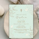 Elegante Mint Gold Blätter Butterfly Cross Taufe Einladung