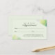 Schöne und elegante Terminkarte für Libellen mit unserer handgedruckten Libelle-Illustration. Ein heller, hellgrüner Hintergrund verleiht dem Ganzen ein sanftes, modernes Aussehen. Personalisieren Sie Ihre Daten mit Firmennamen. Auf der Rückseite befinden sich Informationen zur Termin-Erinnerung, die in einem sauberen und minimalen Stil mit künstlerisch grünen Aquarellpinsel Akzente setzen, die das vordere Libellenbild wunderbar ergänzen. Personalisiert mit Kontaktinformationen. Alle Kunstwerke in unserer eleganten grünen Aquarellkarte sind handgezeichnet Originalkunstwerke der Moodthologie. Sie können die Hintergrundfarbe, den Schriftart und das Layout nach Ihren persönlichen Vorlieben anpassen.