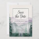 Mit diesem eleganten, naturlich inspirierten Save the Date verkünden Sie Ihr Hochzeitstag stilvoll. Das wunderschöne Aquarelldesign besticht durch eine schmucke Berglandschaft und einen üppig grünen Wald. Die moderne Kalligraphie verleiht der Touch der Raffinesse eine besondere Note. Passen Sie Ihre Namen und Ihr Hochzeitstermin für eine personalisierte Ankündigung an.