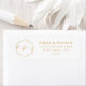 Lassen Sie Ihre Hochzeitseinladungen mit diesen eleganten und personalisierten Mit Monogramm Rücksendeadressen-Aufklebern in Weiß und Gold auffallen. Diese Etiketten verfügen über ein stilvolles Monogramm der Initialen des Paares und das Datum der Hochzeit in einem raffinierten goldenen Schriftart, Set vor einem knusprigen weißen Hintergrund. Diese Labels passen perfekt zu Ihren Einladungen oder Dankeschön-Karten und fügen Ihrer Hochzeitsarbeit eine Touch von Eleganz und Klasse hinzu. Egal, ob Sie rett-the-date, Einladungen oder Dankeschön-Karten verschicken, diese Labels machen es einfach, Ihrer Hochzeitskorrespondenz eine persönliche Touch hinzuzufügen.