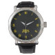 Diese elegante Armbanduhr bietet ein zeitloses Design mit einem klassischen schwarzen Ziffernblatt, das mit goldenen römischen Ziffern geschmückt ist und eine Touch traditioneller Eleganz schafft. Das personalisierbare Monogramm "JBS" wird in der Mitte des Zifferblattes deutlich dargestellt und bietet dem Träger eine einzigartige und persönliche Touch. Die Uhr ist in einer polierten silberfarbenen Verkleidung eingefasst und wird durch einen luxuriösen schwarzen Ledergurt ergänzt, der Komfort und Stil garantiert. Die römischen Ziffern verbessern die Lesbarkeit und sorgen für eine klassische Raffinesse, die diese Uhr zu einem perfekten Accessoire sowohl für formelle als auch für lässige Anlässe macht. Es ist ein ideales Geschenk für jeden unter Familie oder Freunden, der eine Mischung aus klassischem Design und persönlicher Anpassung schätzt. Wählen Sie den Stil aus dem Menü "Optionen".