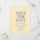 Erstellen Sie Ihre eigene personalisierte Hochzeit speichern Sie die Datumskarten mit moderner Typografie in blau auf gelb gestreiftem Muster Hintergrund.