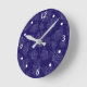 Elegante moderne, blumengeschmückte Runduhr mit klassisch blauem Hintergrund und illustrierten abstrakten Blätter.