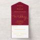 Elegante moderne Burgund und Gold Minimal Hochzeit All In One Einladung