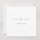 Diese schlichte Hochzeit speichern das Datum flache Vorlage verfügt über ein elegantes, minimalistisches, modernes Design. Die Standard-Kartenform ist ein separates Quadrat, aber Sie können diese auf eine Standard-Form und Größe ändern, wenn Sie es vorziehen. Sie können es auch im Bearbeitungsmodus mit scharfen und abgerundeten Ecken versuchen, da beide Seiten gut mit diesem Design funktionieren! Die Vorderseite zeigt Ihre Vornamen und eine "Save the Date"-Botschaft in einem eleganten Bordeaux und vermittelt mit einer auffallenden Mischung aus zwei verschiedenen Schriftart, mit "the" in einem leichten, fließenden Drehbuch zwischen der Erholung der Nachricht, die im oberen Fall mit einem kühnen, knusprigen formalen Look ist. Dieses Design-Element ist auf beiden Seiten der Karte enthalten und kann nicht verändert werden. Sie können es aber auch auf der Rückseite löschen, um ein noch einfacheres Aussehen zu erhalten. Und auf der Rückseite können Sie natürlich auch unsere Beispielinfo durch Ihre eigenen ersetzen, Textfelder löschen, die Sie nicht brauchen, oder den Wortlaut ändern, sowie Schriftart, Größe und Farbe ändern. Sie können z.B. 'heiraten' ändern, 'den Knoten binden' usw. oder unsere Beispielwebsite-Details löschen, ohne sie durch Ihre eigenen zu ersetzen. Oder Sie wählen Ihre Nachnamen und Ihre Vornamen auf der Rückseite. Auf der Rückseite haben wir den gleichen Bordeaux-Ton für Ihre Namen gewählt, den wir für den "Save the Date"-Text auf der Vorderseite verwendet haben. Wenn Sie den Text bearbeiten, um Ihre eigenen Namen zu zeigen, sollten Sie diese Farbe ändern. Der Text der Vornamen ist standardmäßig schwarz (Farbe 00000), und auf der Rückseite, zusätzlich zum burgundischen Namenstext, haben wir Standard-Schwarz zusammen mit einem etwas weicheren Schwarz (Farbe 1C1C1C) für Ihre Datumsangaben und Position verwendet. Die Standard-Hintergrundfarbe auf beiden Seiten dieser Karte ist Set als transparent, um die Papierfarbe lassen dienen einfach als Grundton. Aber man kann das bearbeiten und das Aussehen eines oder beider Seiten in dieser Hinsicht verändern, ebenso um seinen Stil Anzug zu geben. Matte, der Standard-Papiertyp, hat eine sanfte Wärme und schlichte Eleganz, die gut mit diesem minimalistischen Design funktioniert. Aber Sie können das in Halbglanz ändern, oder in Zazzle's Signature- oder Premium-Papieren, die einen zusätzlichen Reichtum verleihen. Passen Sie diese elegante minimalistische Hochzeit an und speichern Sie das Datum flache Kartenvorlage mit den intuitiven Bearbeitungswerkzeugen von zazzle und Ihrer Inspiration und machen Sie es einzigartig. Wir bieten auch Versionen dieser Karte in Gold, Rose Gold und Schwarz, so bitte Karo unseren Shop für diese und andere einfach chic modern speichern Sie die Datumskarten!