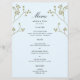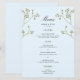 Ein elegantes, modernes, klassisches Winterhochzeitmenü mit zwei handgezeichnet Zweigen von Winterbeeren, die digital mit einer goldenen Farbe und einem eisblauen Hintergrund lackiert sind. Eine schöne Wahl für eine Winterhochzeit, eine Weihnachtshochzeit, eine Neujahrshochzeit oder eine Hochzeit in den kalten Monaten - November, Dezember, Januar, Februar. Teil des Set "Elegant Winter Ice Berries".