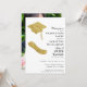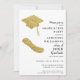 Dieses stilvolle Foto Abschluss in Weiß, Schwarz und Gold für die Klasse der 2025-Absolventen ist mit einem Gradhut und Diplomabbildungen dekoriert. Laden Sie das Foto des Absolventen über Vorlage hoch und personalisieren Sie die Einladung mit einem Namen, Jahr, Schule, Datum, Ort und UAWG. Foto ist auf der Rückseite.