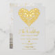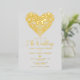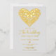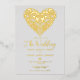 Das vergoldete Herz und das Einladungs-Drehbuch auf der Vorderseite dieser romantischen modernen Hochzeitseinladung sind sowohl formell als auch lässig. Das filigrane Herz hat ein Vintages volkstümliches Valentingefühl, während die reale Goldfolie diesem individuellen Hochzeitsstandort Eleganz und Romantik verleiht. Verwenden Sie die Rückseite für ein Foto mit oder ohne Filter. Eine schöne Wahl für eine Valentiner Hochzeit.