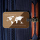 Ein großartiges Design, um Ihre Sachen zu identifizieren. Die Karte der Welt in einem halb braunen / halb hellbraunen Hintergrund