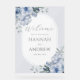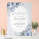 Elegant dustig blühende Hochzeit Begrüßung Acrylzeichen. Dieses Design besticht durch hellblaue Aquarellfarben und einen modernen ovalen Rahmen.