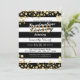 Elegante, moderne, schwarz-weiße Streifen mit Imitaten goldenen Spritzer, Abschluss Zeremonie Einladungen. Sehr klassisches und raffiniertes Design für den klassischen Absolventen. Personalisieren Sie Ihre eigene Nachricht und das Monogramm auf der Rückseite. Das gesamte Foto-Druckdesign.