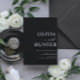 Diese elegante Hochzeitseinladung besticht durch moderne Kalligraphie und eine klassische, kühne Schrift. Mit schwarzem Hintergrund ist es elegant und frisch. Die Namen der Ehepaare sind kühn, was sie zur ultimativen minimalistischen Einladung zur Hochzeit macht.