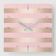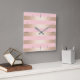 Elegante moderne Küken-Rose, rosa gestreift Quadratische Wanduhr