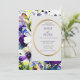 Eine elegante Hochzeitseinladung aus fröhlichen violetten Blume mit eleganter Handschrift in einem Goldrahmen