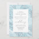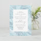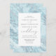 Diese elegante Hochzeitseinladung besticht durch einen pastellblauen Marmorhintergrund mit silbernen Imitaten, Glitzer-Venen. Der benutzerdefinierbare kohlegraue Text wird durch ein weißes Rechteck gerahmt. Das Marmordesign wird auf der Rückseite wiederholt.