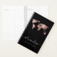 Stilvolles Planerdesign mit eleganten Imitaten Kupfer Rose Gold Weltkarte, schwarzem Hintergrund und elegantem kalligraphischen Schriftart. Personalisieren Sie das Produkt mit Ihrem Namen und Ihren Daten.