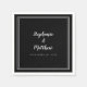 Die eleganten, modernen Minimalistischen Black & White Wedding Napkins zeichnen sich durch ein modernes Design aus, das auf einem eleganten schwarzen Hintergrund eine doppelte gerahmte Grenze in knalligem Weiß aufweist. Dieses einfache, textbasierte Design bietet zeitlose, klassische Eleganz. Personalisieren Sie die Namen der Paare und das Veranstaltungsdatum in eleganter weißer Schrift und Schrift. Diese sind eine perfekte Begleitung für jede Hochzeit oder Verlobung! Achten Sie darauf, den Sammellink auf dieser Seite zu sehen, um alle passenden Elemente anzuzeigen! Bitte richten Sie Fragen oder Anfragen an invitationsuites@gmail.com.