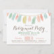 Niedliche, farbenfrohe, moderne Party Einladung in den Ruhestand mit Pastellblau, aquamarinem Grün, Rosa, Korallen, Gelb und Taupe Brauntönen. Elegante, männliche oder weibliche Mitarbeiter formelle Firmenfeier in der Geschäftsführung Pensionierung einladen. Großartiges Jahr für Frühling, Sommer, Herbst oder Winterruhestand Party.