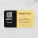 Dies ist eine hübsche, moderne Visitenkarte mit QR-Code-Skript. Ideal für Unternehmerinnen, Make-up Künstler, Schönheitssalons, Designer und unabhängige Künstler. Weiße, schwarze und gelbe Visitenkarte für jeden Beruf mit Ihren Social-Media-Informationen in Form Ihres persönlichen QR-Codes und auf der Rückseite ein Foto.