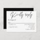 Diese elegante und moderne Antwortkarte wurde mit schwarzem Schriftzeichen auf weißem Hintergrund versehen. Wir benutzten eine Kombination aus eleganter klassischer Schrift, gepaart mit einer modernen Kalligraphiebriefe.Eine schöne, einfache und anpassbare Antwortkarte, die für das moderne Paar auf der Suche nach Eleganz und Einfachheit entworfen wurde. Diese wunderschön gestaltete Karte zeichnet sich durch einen sauberen, raffinierten Look in zeitlosem Design aus.