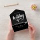 Diese elegante Schwarz-Weiß-Einladung eignet sich ideal für eine moderne Hochzeit. Das schlichte Design zeichnet sich durch elegante weiße Kalligraphie auf einem fett schwarzen Hintergrund aus.