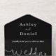 Dieses elegante Schwarz-Weiß-Hochzeitsinspekt eignet sich perfekt für eine moderne Hochzeit und bietet ein schlichtes Design mit eleganter weißer Kalligraphie auf schwarzem Hintergrund.