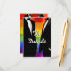 Die Gay Men Wedding Elegant Modern Kollektion bietet eine vollständige Suite an koordinierter Korrespondenzartikeln und Accessoires, die für zwei Bräutigame konzipiert sind. Zwei Bräutigame in klassischen schwarzen Smoking vor einer lebendigen Regenbogen-Pride-Flagge, mit einer kühnen Pinsel-Schrift-Typografie, die eine retro-nostalgische Note in eine moderne Feier bringt. Jedes Stück ist vollständig anpassbar mit Ihren Namen, Datum und Hochzeitsdetails.