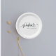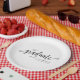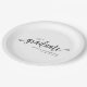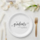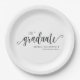 Elegante moderne Script Graduation Party Teller. Die Teller sind in Schwarz-Weiß gehalten und mit einem eleganten Schriftart versehen. Fügen Sie den Namen der Absolventen und High School oder Uni für die perfekte personalisierte Abschlussfeier Teller.