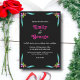 Diese elegante blumengeschmückte Einladung eignet sich perfekt für eine moderne Blumenhochzeit. Das romantische Design besticht durch farbenfrohe und glänzende Rose aus Imitaten mit eleganter weißer Typografie auf fett schwarzem Hintergrund.