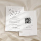 Moderne Details Skript minimalistisches Design in Holzkohle schwarz und weiß, mit Hochzeitswebsite QR Code auf der Rückseite, einfach und elegant. großartige Hochzeitsdetails Gehäuse Karten für moderne Hochzeit und andere Veranstaltungen. Sehen Sie sich alle passenden Stücke in der Sammlung an.