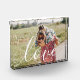 Ein eleganter Foto-Sake mit stilvollem Kalligraphie-Set in einem schönen weißen Skript-Schriftart mit dem Wort Liebe. Personalisieren Sie mit Ihrem Foto, um ein unvergessliches Geschenk zu machen! Entwickelt von Thisisnotme©