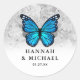 Elegante Monarch Template Blue Butterfly Wedding Runder Aufkleber