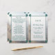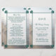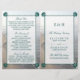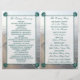 Diese doppelten Vorlagen sind ideal für alle, die eine romantische Hochzeit am Meer planen. Das Design besticht durch eine aquamarine, dunkelgrüne Fläche mit passenden Motivecken aus Jakobsmuscheln auf einem sandigen Hintergrund. Das einfache Design kann für den Anzug Ihrer Veranstaltung personalisiert sein und wird die perfekte Ordnung für jeden Strand themed Party, einschließlich; Brautparty, Verlobungen, Polterabende, Geburtstagspartys und vieles mehr.