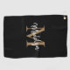 Elegantes Monogram Black Gold Girly Scrip Golf Handtuch. Dieses elegante, moderne Golftücher mit individuellem Monogramm und Namen macht es möglich, es einfach zu personalisieren.