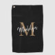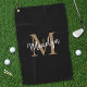 Elegante Monogram Black Gold Girly Script Name Golfhandtuch