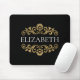Ein elegantes Schwarz und Gold blühte Mousepad für Ihr Büro oder zurück zur Schule. Fügen Sie Ihren Namen zwischen den goldenen Blüten auf der Vorderseite geblüht. Entworfen für Sie von BlackBerry Boulevard.