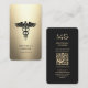 Elegante Doctor Nurse Black Gold Caduceus Elegant Modern Monogram Business Card mit QR Code. Bitte DM, wenn Sie Hilfe zum Ändern benötigen, bevor Sie einen Kauf tätigen. Vielen Dank für Ihre Unterstützung!
