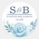 Elegante Monogram Blue Floral Wedding Runder Aufkleber