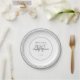 Elegante Monogram Chic Script White Silver Wedding Pappteller