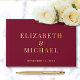 Elegantes bordeauxrotes Gästebuch mit Ihren Namen in großen klassischen Serifentypografie und Ihrem Hochzeitstag mit Monogramm in Ihrer Wahl von echter Gold-, Silber- oder Rose-Goldfolie. Personalisieren Sie mit Ihrem Foto auf der Rückseite und einem benutzerdefinierten Titel auf der Wirbelsäule.