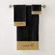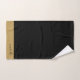 Personalisierter eleganter monogramm schwarzer goldener Schriftname, Badetuch-Set mit Goldrahmen. Die Badezimmer sind mit einem minimalistischen typografischen Stil dekoriert.