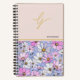 Herrliche Imitate goldenes Monogramm Notizbuch gepaart mit einem rosa und blauen Blumengarten. Die Rückseite ist mit rosa verziert und hat ein kleines Herz.